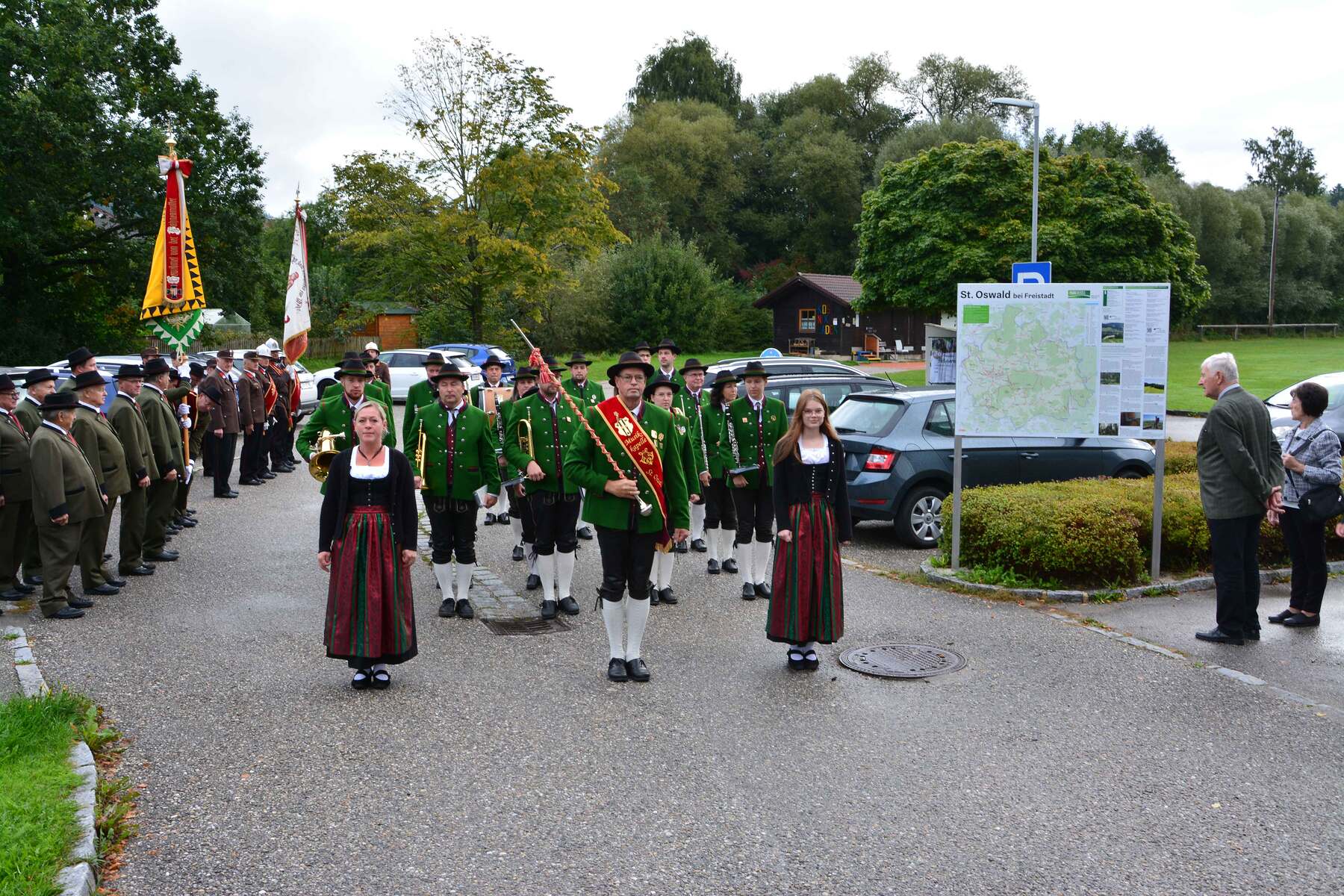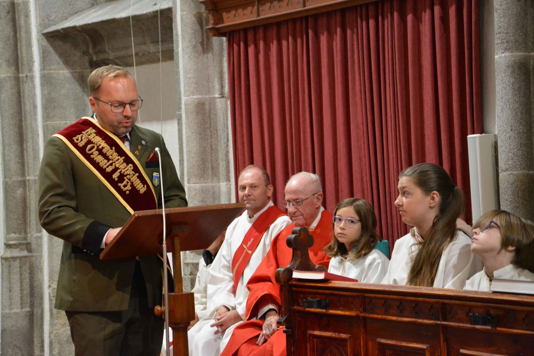 Mit Dankbarkeit wurde unser Herr Pfarrer Josef Etzlstorfer nach 10 Jahren Wirken in unserer Pfarre St. Oswald bei Freistadt in den wohlverdienten Ruhestand verabschiedet. Mit seiner Offenheit und seiner spürbaren Liebe zu den Menschen hat er unser Pfarrleben geprägt. Die Dankbarkeit der Vereine und Pfarrbevölkerung spiegelte sich in der Anwesenheit vieler wider: die Musikkapelle, die Feuerwehr, der Kameradschaftsbund, die Goldhaubenfrauen, der Mitmachchor, der Seniorenbund, der Pensionistenverband und ehrenamtliche Mitarbeiter der Pfarrgemeinde gingen beim festlichen Einzug in die Kirche mit. Auch ein großer Teil der Pfarrbevölkerung wohnte dieser Verabschiedung bei und füllte die Pfarrkirche. Als Zeichen der Verbundenheit, wurde Pfarrer Etzlstorfer mit Geschenken bedacht. Auch der Herr Bürgermeister Michael Spörker richtete anerkennende Worte und einen Dank der Gemeinde an den Herrn Pfarrer. Einen schönen und geselligen Abschluss bildete eine Agape, die auf Grund der Witterung im Pfarrheim abgehalten wurde.
