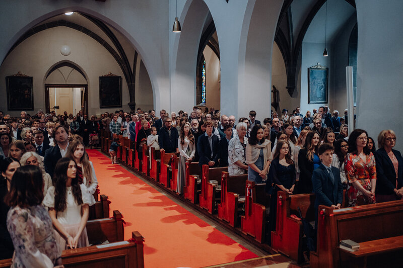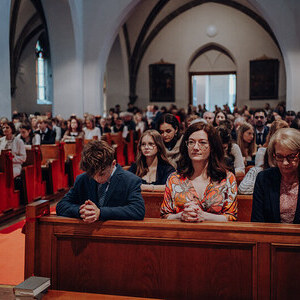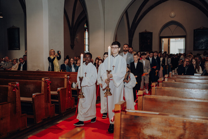 Firmspender Adi Trawöger ging in seiner Predigt auf die Begabungen der Firmlinge ein und betonte, dass jede und jeder einen wertvollen Beitrag sowohl in der Pfarre als auch in der Gesellschaft leisten kann. Musikalisch wurde die Firmung von Christine Richter-Follrich an der Orgel sowie der kroatischen Musikgruppe Gloria Patri umrahmt. Im Anschluss an den Gottesdienst gab es wieder eine Agape im Pfarrzentrum, bei der die Gäste mit Getränken und Mehlspeisen verköstigt wurden.