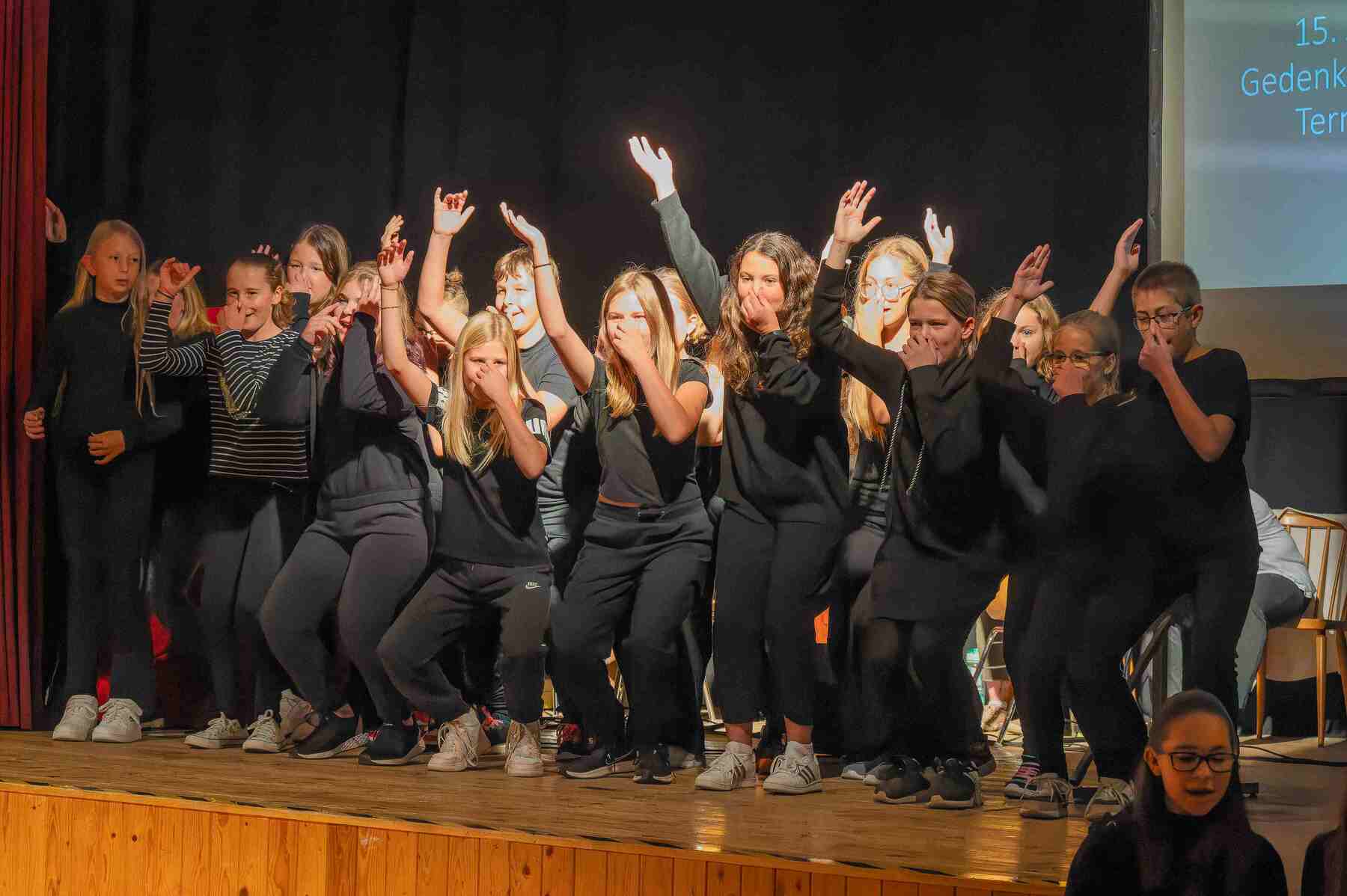 Jugendliche machten anhand eines kurzen Rollenspiels anschaulich, wie man in bestimmten Situationen Zivilcourage zeigen kann. Bereits im Vorfeld waren junge Menschen gefragt worden, was sie unter dem Begriff Zivilcourage verstehen; die Antworten wurden in einem kurzen Video gezeigt. Bei der Veranstaltung wurden die Teilnehmer:innen aktiv in die Thematik eingebunden und u. a. um kurze Statements gebeten. Der Beitrag der Jugendlichen endete mit einem Appell: Bei Zivilcourage gehe es darum, hinzuschauen, hinzuhören und Unrecht nicht einfach hinzunehmen. Es erfordere Mut und Entschlossenheit, um gegen Diskriminierung und Ungerechtigkeit vorzugehen. Zivilcourage sei ein wichtiges Fundament für den Zusammenhalt in der Gesellschaft.