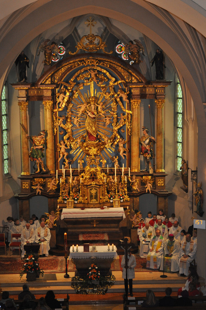 Die Visitatoren wurden bereits beim Einzug von einer Schar Ministranten aus unterschiedlichsten Pfarren begleitet. Musikalisch wurde der Festgottesdienst von zwei verschiedenen Chören gestaltet. Die Wallfahrtskirche war fast bis auf den letzten Platz gefüllt.